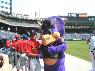 曹錦輝和落磯隊的吉祥物Dinger