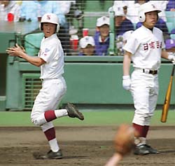 1局下,日南學園主砲吉武亮太便以適時安打攻下球隊第1分;6局下,吉武亮太再度於2出局一、二壘有跑者時擊出適時安打,並靠著對手失誤一舉搶下2分。