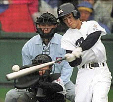 3局下,落後1分的今治西高展開反撲,雖然強迫取分戰術失敗,但池內大輔的二壘安打仍為球隊逆轉成功;4局下,今治西再取3分,也擊倒投姿怪異而風靡一時的日南學園王牌--春永利治。7局上,日南學園雖反撲3分,但為時已晚。今治西高繼4年前由藤井秀悟領軍之後,再度殺入春季4強。 |