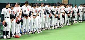 賽前,大榮隊員為根本默哀 |