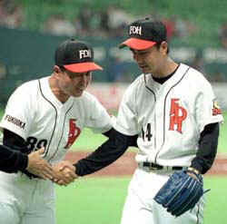 火腿投捕:岩本勉、下柳剛 – 野口壽浩
