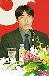 松阪(左)、上原於確定獲獎後舉行記者會 |