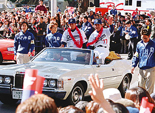 包含監督星野仙一、教練、球員在內40人,分乘16台敞篷車,自中日新聞社前出發,繞行10公里後,抵達中日大樓後結束遊行。這也是中日自1982年之後再次舉辦慶祝遊行。 |