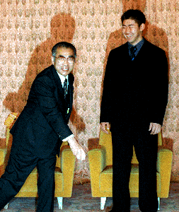 小淵首相(左)拿起松阪(右)