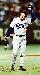話說福原桑今天103球中的第1、3、4球,被橫濱前三棒波留敏夫、石井琢朗、鈴木尚典連續擊出三支安打、先失1分,之後駒田德廣犧牲高飛讓福原再失1分,而這個比數就一路到比賽最後。