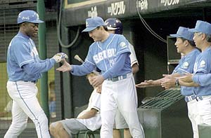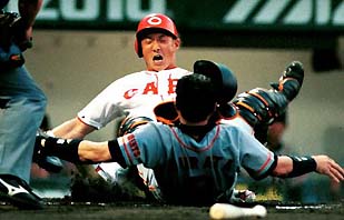 二局下,廣島金本知憲靠西山秀二壘打強取分數。 |