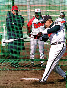 球評落合博滿,16日前往拜訪近鐵隊春訓,並直接指導內野手中村紀洋的打擊。