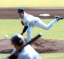 備受期待的大榮第2指名投手山田秋親,本日首次掛帥先發,在面對球界至尊——巨人軍,以及福岡巨蛋滿場的4萬8000名觀眾注目下,於4局的投球中,雖僅被擊出2支安打,卻送出高達5次保送而失去2分。
