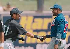 一朗在三局面對去年獲得12勝11敗的小熊隊主力先發投手Jon
