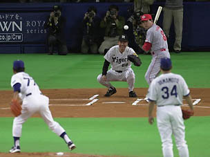 佐佐木則在無出局二壘有人時上場救火,雖投出1次保送,但亦演出2次三振而成功收拾危機,也結束熱身賽的最後登場。