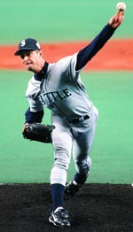 昨晚日本完封大聯盟之後,今天輪到大聯盟投手逞威。大聯盟明星隊由Moyer先發5局,Plesac中繼1局,再由三位強力救援Jackson、Gordon、Hoffman各封鎖1局,5投手演出接力完封。