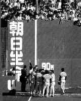 只是,那一支全壘打,到底是不是貨真價實的全壘打呢?四個當事人都有不同的說法。大杉、上田、富澤線審自是站在自己的立場說話,那麼受害者足立呢?他的說法倒是可以參考一下:「大杉擊出球之時,我的臉其實是向著一壘方向的養樂多休息區的。球打出去時,休息區所有人都站了起來。然後過了一秒,兩秒,全部的人都大叫著『可惡!』,搖搖頭坐回去。正當我想著『是界外啊,好險』而回頭往左外野標竿看過去時,卻看到富澤先生轉著高舉的雙手。所以養樂多也應該認為那是一個界外球。」 |