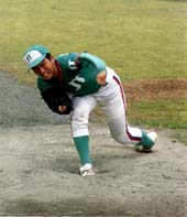 雖擁有高達152的速球與銳利的指叉球,而號稱「九州頭號速球投手」,但球種不足,加上控球不佳,使得評價不甚高。 |